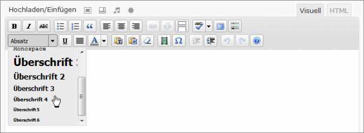 Allerdings gilt es zu beachten, dass z. B. das Default-Theme die Überschrift erster Ordnung ( h1 ) bereits für den Schriftzug im Kopfbereich und die Überschrift zweiter Ordnung ( h2 ) für die Überschriften bzw. Titel der Blog-Beiträge und der Pages "reserviert" hat. Somit bleibt Ihnen h3 - h6 zur Verfügung, aber die vier Arten von Überschriften sind mehr als ausreichend um den Inhalt eines Beitrages oder einer Page zu strukturieren.