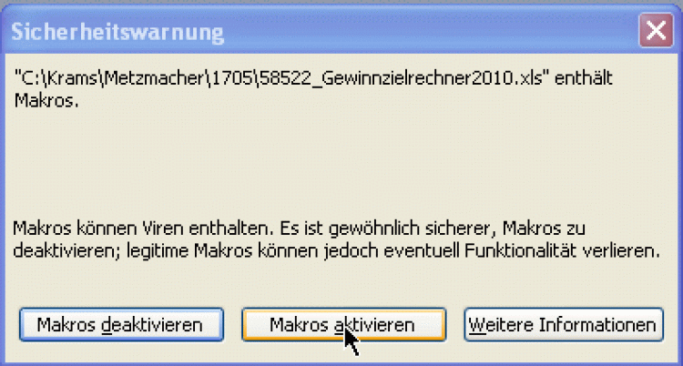 Sie müssen die Ausführung von Makros für diese Datei zulassen, damit der Wunschnetto-Rechner funktioniert.