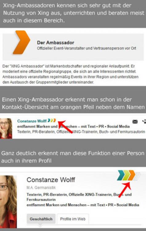 Gute Adressen dafür sind die Profile der Xing-Ambassadoren, die Xing auch nach außen vertreten und von daher viel Wert auf ein gutes und aktuelles Profil legen. 70 Xing-Ambassadoren in Deutschland gibt es derzeit, hier drei, die ich persönlich kenne und deren Profile ich empfehlen kann: