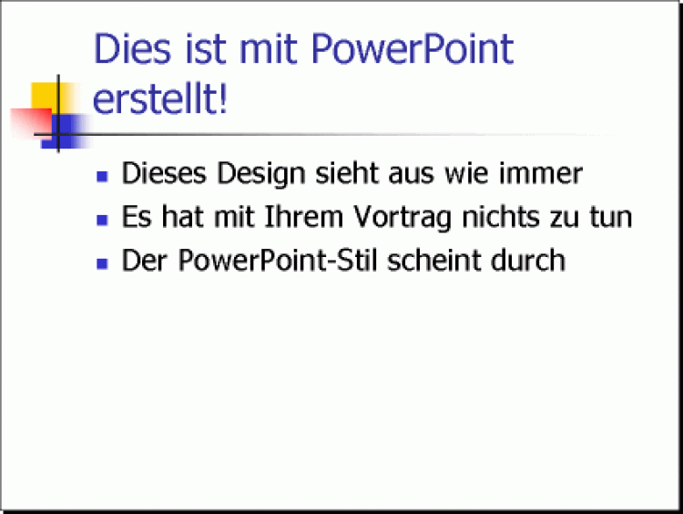 PowerPoint bietet sogar schon eine Menge vorgefertigte Designs an, die direkt mit ausgeliefert werden. Die folgenden Bilder zeigen zwei der häufig benutzten Designs: