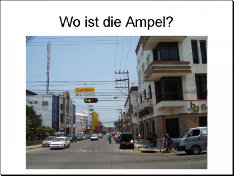 Achten Sie darauf, dass ein solches Bild auch wirklich zeigt, was Sie meinen. Vergleichen Sie mal die beiden folgenden Folien zum Thema "neuartige Ampel":
