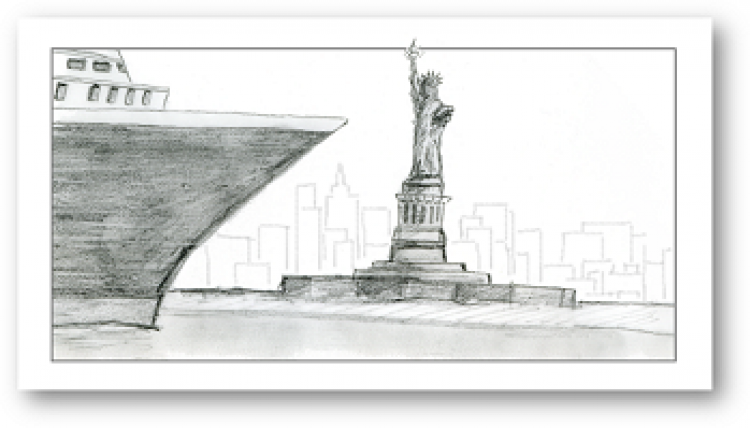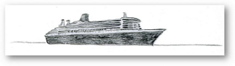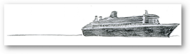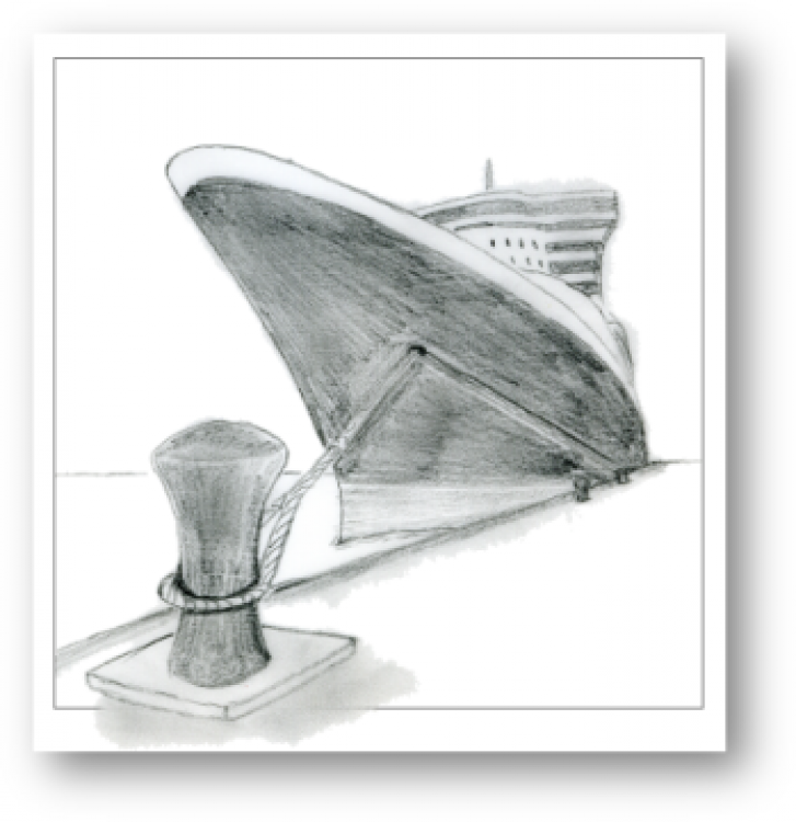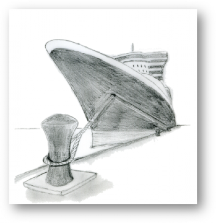 Das ist eine klassische Froschperspektive (siehe den Beitrag "Zeichnen lernen: Perspektive zeichnen"), welche die Größe des Schiffes betont. Sie können das noch steigern, indem Sie ein kleines Detail in den Vordergrund holen: