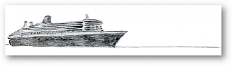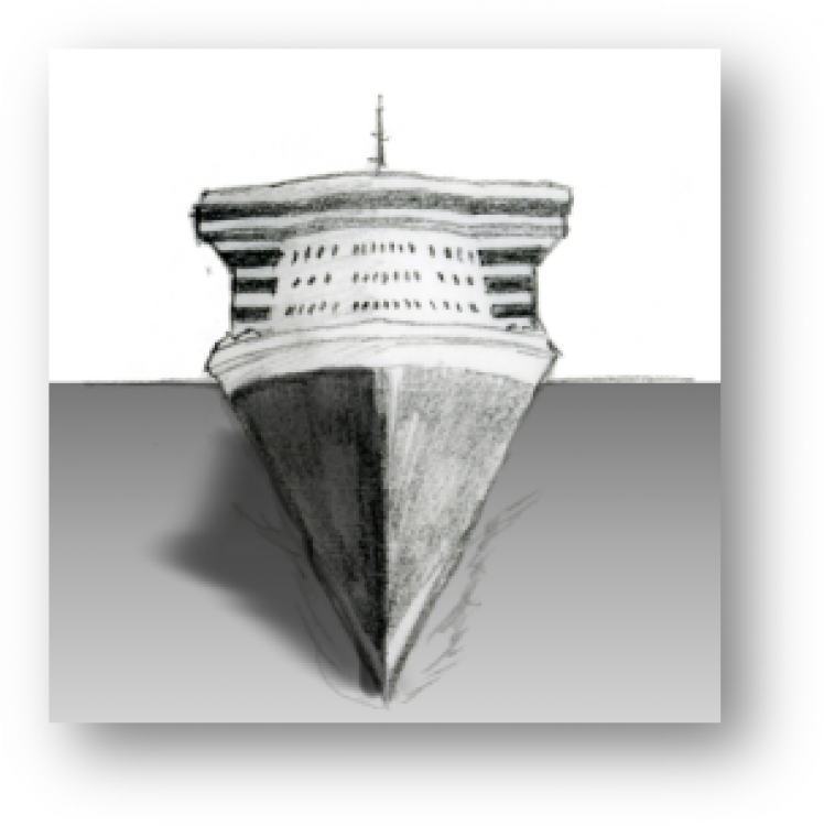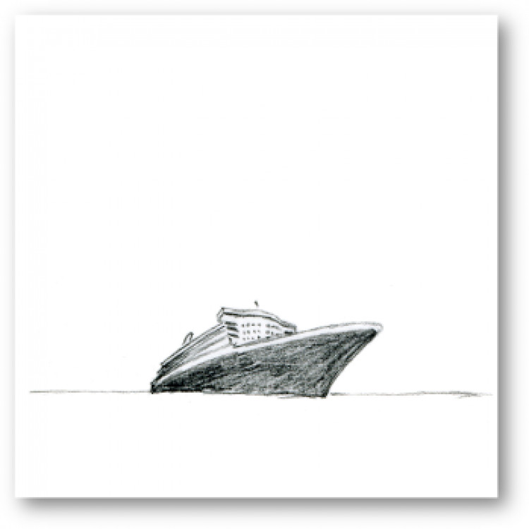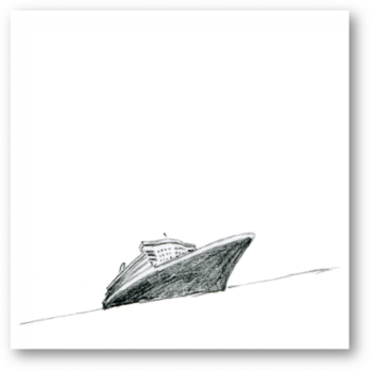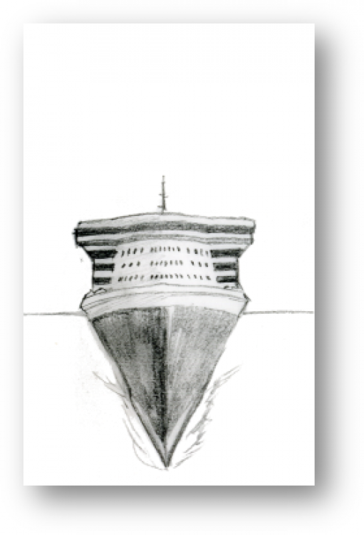 Schon die Position innerhalb des Papiers bestimmt, was das Bild sagt. Ein zeitlicher Fortschritt geht normalerweise von links nach rechts, hier sowieso verstärkt durch die eindeutige Fahrtrichtung des Rumpfs. Schauen Sie sich mal an, wie sich das verändert, wenn Sie das Schiff an den "Anfang" setzen:
