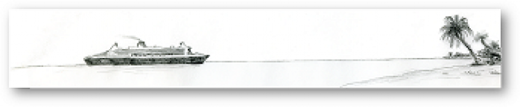 Das Schiff ist insgesamt etwas kleiner geworden und vermittelt damit den Eindruck von "Ferne", in die der Urlaub führt. Mit jeder Verschiebung des (fast) gleichen Schiffs hat sich die Aussage des Gesamtbildes erheblich verändert.
