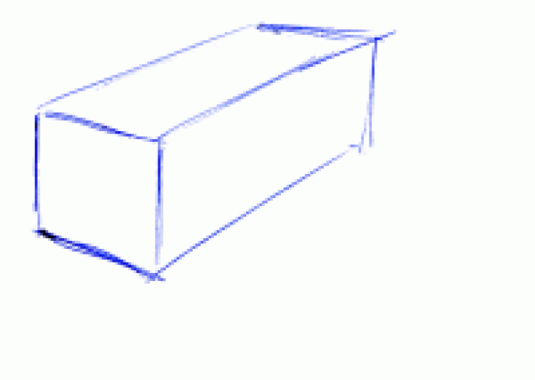 Skizzieren Sie einfach mal einen beliebigen Quader (siehe den Beitrag "Zeichnen lernen: Perspektiven zeichnen") mit wenigen Strichen wie im folgenden Bild: